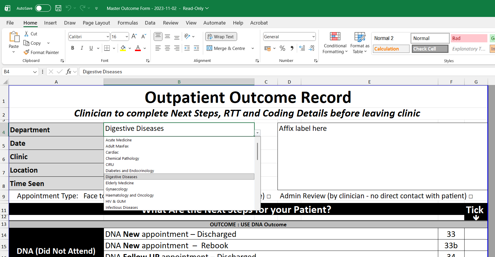 Open and select your Service from the Department drop-down pick list, within the Excel file available below.